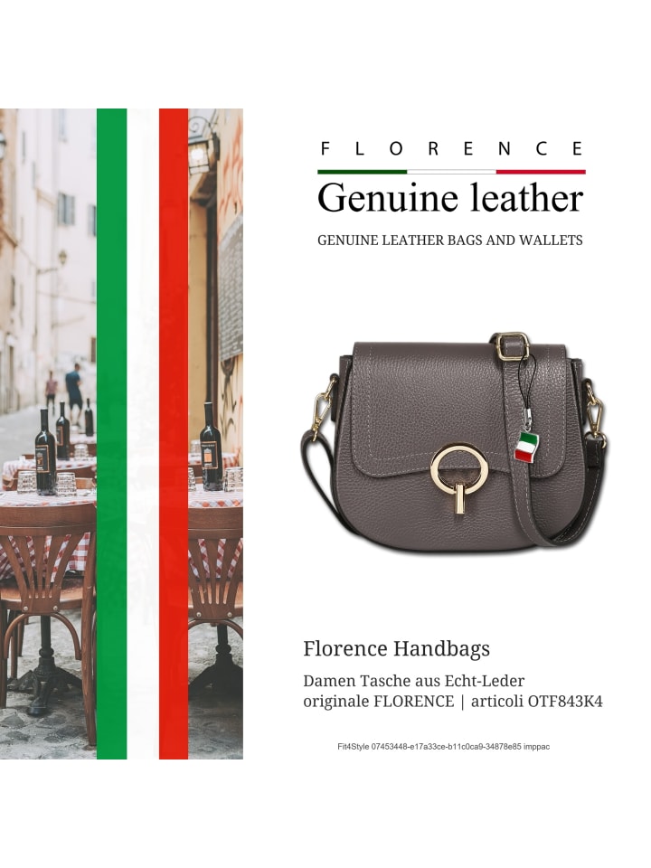 Эта высококачественная сумка через плечо от Florence - модная сумка на каждый день. Сумка из натуральной кожи застегивается на молнию и имеет дополнительный клапан на кнопке. Сумка из натуральной кожи среднего размера отлично подходит для повседневного использования, поскольку в ней достаточно места для всех необходимых вещей. Длина сумки составляет около 23 см.