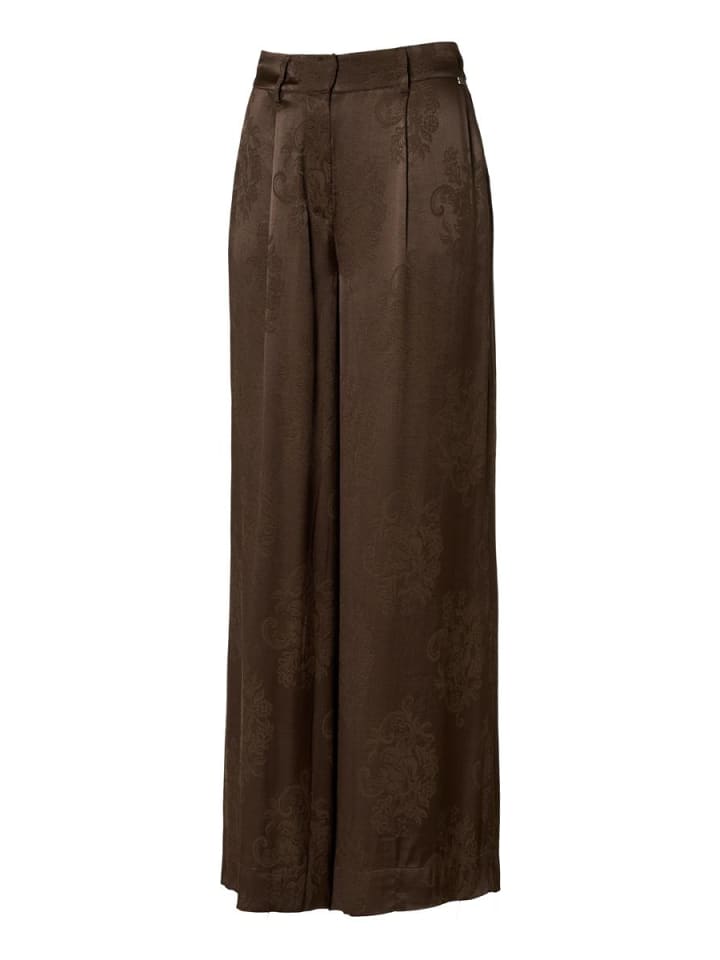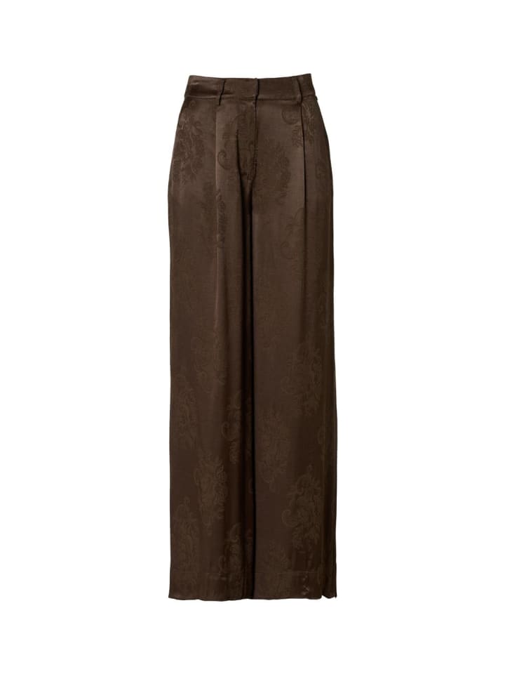 Эти темно-коричневые жаккардовые брюки от Mart Visser - стильная базовая модель, которая легко сочетает в себе элегантность и комфорт. Благодаря прямому, свободному крою брюки источают вневременной класс и идеально подходят для самых разных случаев. Высокая талия с эластичной спинкой обеспечивает идеальную посадку и исключительный комфорт. Косые передние карманы и элегантные прорезные карманы сзади добавляют сдержанный шик. Тканый жаккардовый цветочный узор придает ансамблю роскошный вид и богатую текстуру. Сочетайте брюки с подходящей блузкой Bension или Bellize для создания изысканного образа тон в тон или наденьте их со светло-бежевым или кремовым топом для более повседневного, но изысканного образа. Модный совет: выбирайте золотые аксессуары и минималистичный клатч, чтобы еще больше подчеркнуть жаккардовые детали. Благодаря высококачественному крою и роскошным тканям брюки сохраняют форму и остаются удобными в носке из сезона в сезон. Также доступен в темно-синем и черном цветах как вневременная альтернатива.