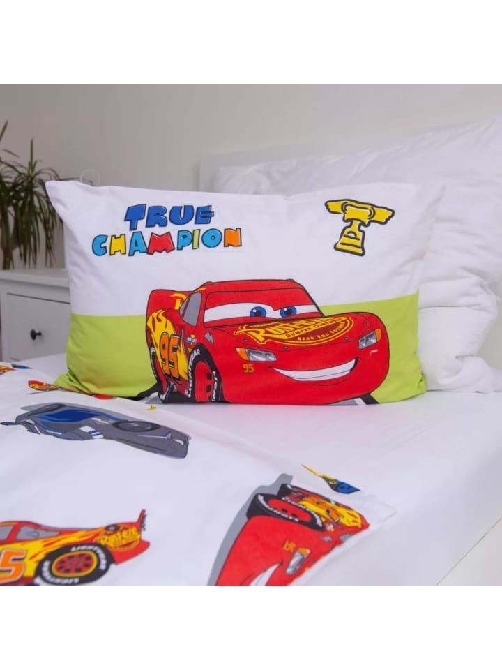 С детским постельным бельем Disney Cars Champion маленькие гонщики отправятся в сказочные ночи, полные скорости и приключений! Спортивный дизайн с популярным героем Молнией Маккуином привносит настоящую гоночную атмосферу в детскую комнату - идеально подходит для маленьких поклонников популярных мультфильмов Pixar.