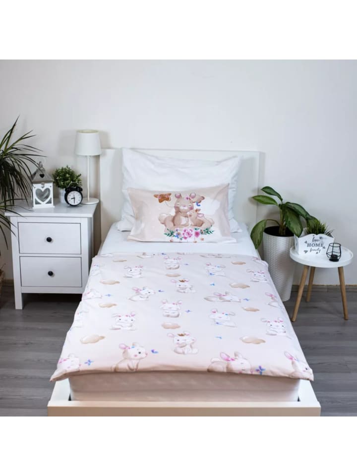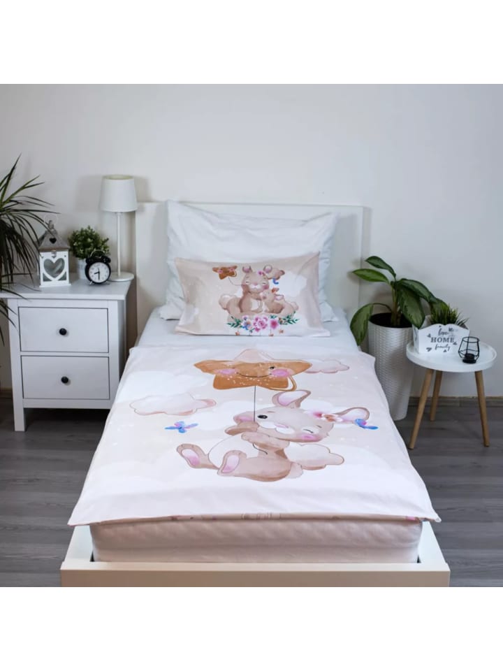 Комплект из двух предметов состоит из пододеяльника (100×135 см) и наволочки (40×60 см) - идеально подходит для детских кроваток. Изготовленное из 100% хлопка, постельное белье мягкое, приятное для кожи и дышащее, идеально подходит для чувствительной детской кожи. Практичная молния позволяет легко сменить постельное белье и обеспечивает надежную фиксацию.