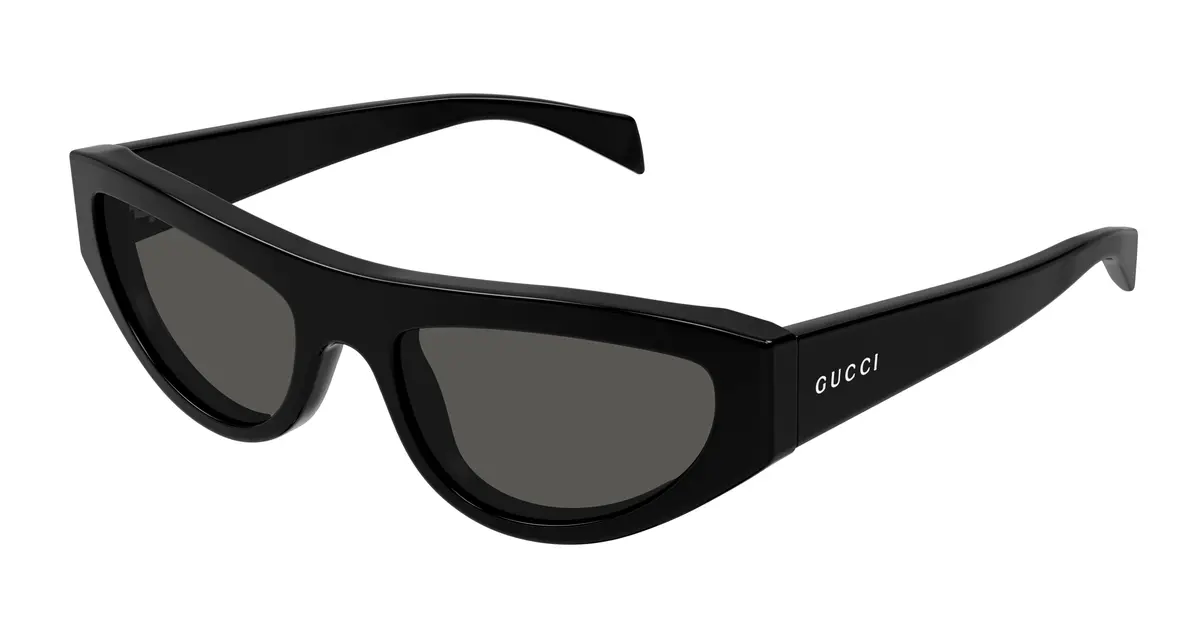 GUCCI GG1919S в черном пластике с серыми линзами — культовый модный силуэт, сочетающий смелую форму, комфорт и узнаваемое гламурное звучание бренда.