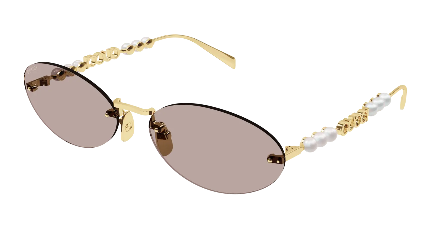 GUCCI GG1922S в золотом металле с розовыми линзами — романтичная и яркая модель с утончённым блеском, подчёркивающая женственность и придающая лицу мягкое, сияющее выражение.