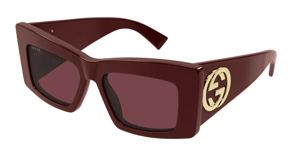Яркие GUCCI GG1842S в насыщенном бордовом оттенке: плотный пластиковый материал обеспечивает надежность, а драматический цвет и стильная форма привлекают взгляды и добавляют смелости в любой образ.