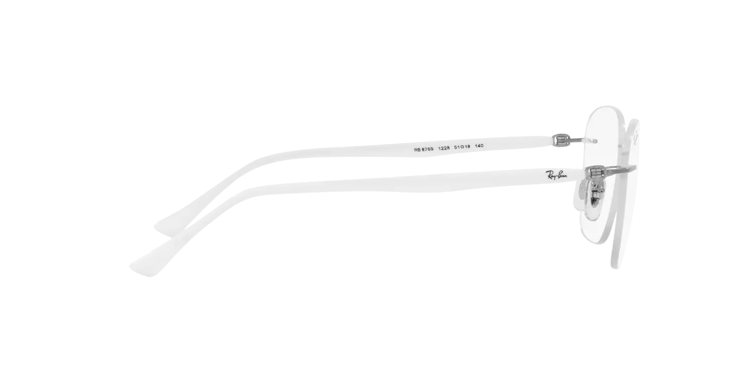 RAY-BAN RX8769 White — металлическая оправа в чистом белом цвете для оптических линз; сочетание прочности металла и модного оттенка дарит современную утонченность и уверенность в деловом и повседневном стиле.