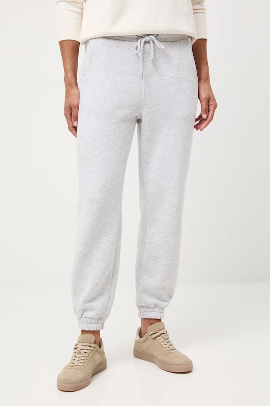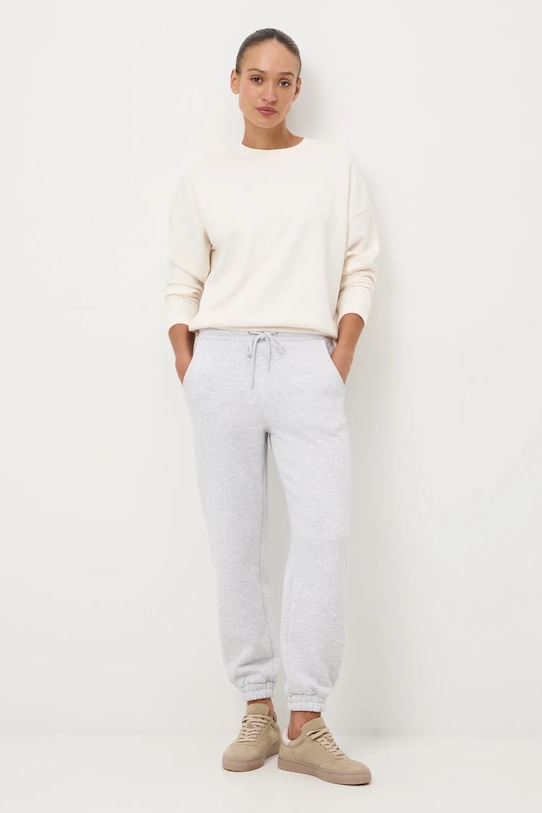Спортивные брюки из коллекции Medicine. Изготовлены из меланжевого трикотажа. - Обычная посадка. - Обхват талии обычный. - Эластичный пояс со шнурками. - Ножки отделаны манжетами. - Накладные карманы. - Меланжевый трикотаж. - Ширина талии (до растягивания): 38 см. - Ширина талии (после растяжения): 44 см. - Ширина бедер: 53 см. - Высота талии: 29,2 см. - Длина по внутреннему шву: 71 см. - Размеры указаны для размера: M.