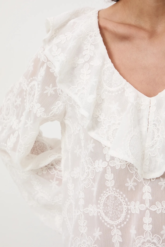 Эта блузка из коллекции Medicine выполнена из тканого материала с декоративной вышивкой и имеет заостренный вырез. - Обычная посадка. - Длинные рукава реглан. - Рукава отделаны резинкой. - Острый вырез. - Декоративная оборка на вырезе. - Модель с декоративной вышивкой. - Длина рукава (от воротника): 71 см. - Длина: 60,5 см. - Ширина груди: 51,5 см. - Размеры указаны для размера: S.