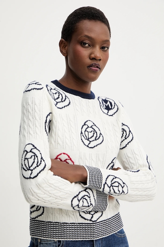 Этот свитер из коллекции Marella выполнен из трикотажа средней плотности. Высокие терморегулирующие свойства шерсти позволяют согреться в холод и охладиться в жару. - Приталенный крой, подчеркивающий силуэт. - Классический круглый вырез. - Рукава и низ изделия отделаны манжетами для защиты от неблагоприятных погодных условий. - Привлекающее внимание плетение. - Длина рукава: 60 см. - Длина: 50 см. - Ширина под мышками: 43 см. - Размеры указаны для размера: S.