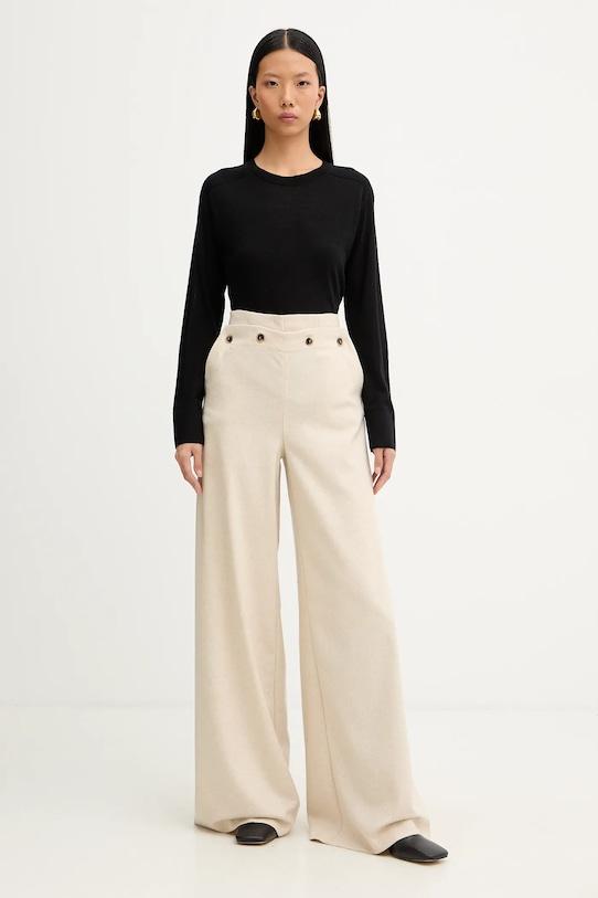 Брюки из коллекции MAX&Co. Изготовлены из трикотажного полотна с добавлением шерсти. Полиамид обеспечивает повышенную прочность. - Изделие содержит переработанные волокнистые материалы. - Застежка на крючок и петлю. - Свободная нога. - Повышенное состояние. - Два боковых накладных кармана. - Имитация карманов на ягодицах. - Ширина талии: 36 см. - Высота талии: 35 см. - Ширина штанины внизу: 37 см. - Длина внешнего шва: 116 см. - Размеры указаны для размера: 36.