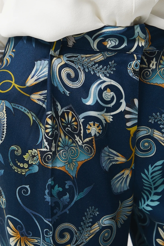 Брюки из коллекции «Medicine». Изготовлены из узорчатой ткани. - Стиль «Чино». - Модель со стандартной талией, застегивающаяся на молнию и крючок. - Накладные карманы. - Декоративные закладки. - Укороченная нога. - Узорчатая ткань. - Модель изготовлена из лиоцелла. - Ширина талии: 38 см. - Ширина бедер: 49 см. - Высота талии: 28 см. - Длина по внутреннему шву: 69 см. - Размеры указаны для размера: S.
