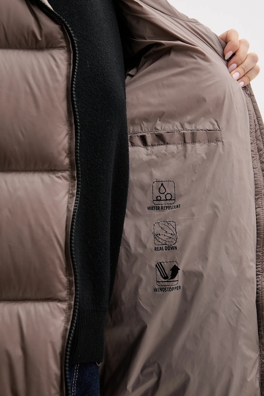 Эта куртка из коллекции Bomboogie утеплённая и выполнена из гладкого материала. Стёганая конструкция с наполнителем из натурального пуха и пера гарантирует высокий уровень защиты от холода. - Водонепроницаемая и ветрозащитная модель. Водостойкость означает повышенную устойчивость к воздействию воды. Изделие сохраняет свои свойства при контакте с водой, что обеспечивает больший комфорт благодаря более низкому порогу водопроницаемости, но не гарантирует полной водонепроницаемости. - Простой дизайн, не стесняющий движений. - Застежка-молния. - Два боковых накладных кармана. - Модель на подкладке. - Длина рукава: 59 см. - Длина: 84 см. - Ширина под мышками: 51 см. - Размеры указаны для размера: S.