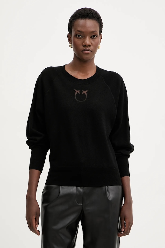Свитер из коллекции Pinko. Изготовлен из шерсти, обладает естественными дышащими и влагоотводящими свойствами. - Классический круглый вырез. - Свободный крой, обеспечивающий полную свободу движений. - Рукава и нижний край отделаны удобными эластичными манжетами. - Длина: 64 см. - Длина рукава: 73 см. - Ширина под мышками: 49 см. - Размеры указаны для размера: S.