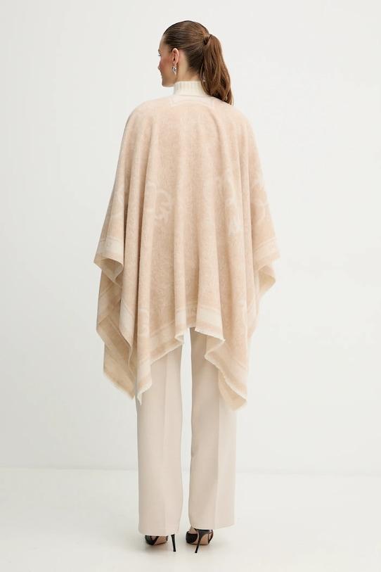 Это пончо из коллекции Pinko выполнено из трикотажного полотна средней плотности с рисунком. Высокое содержание шерсти обеспечивает защиту от холода, а добавление нейлона повышает прочность. - Свободный покрой, не стесняющий движений. - Модель без застежки. - Крой рукава со спущенной линией плеча не стесняет движений. - Модель с декоративной бахромой. - Эластичный трикотаж средней плотности. - Длина: 84 см. - Указаны размеры для размера: Один.