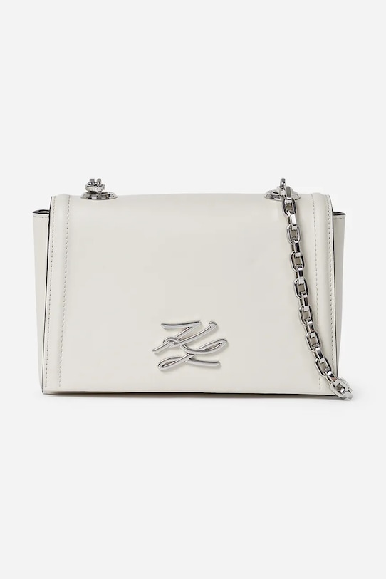 Маленькая сумочка из коллекции Karl Lagerfeld. Модель с застёжкой-крючком, выполнена из натуральной кожи. - Модели линейки Karl Cares изготовлены из материалов, произведенных в ходе устойчивого, экологически чистого процесса производства. - Несъемный, регулируемый ремешок. - Клапан застегивается на магнит. - Отстегивающийся карман сзади. - Внутренний накладной карман для удобного и безопасного хранения мелких предметов. - Не подходит для формата А4. - Входящий в комплект тканевый чехол защищает изделие от пыли. - Глубина: 4,5 см. - Высота: 15 см. - Ширина у основания: 20 см.