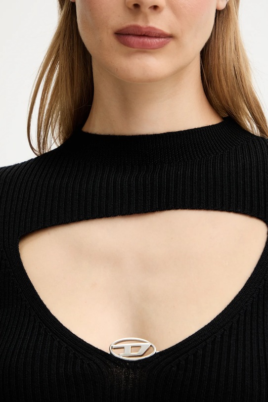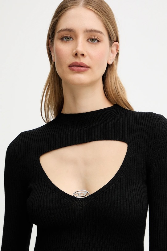 Этот свитер из коллекции Diesel связан из тонкой пряжи. Высокие терморегулирующие свойства шерсти позволяют согреться в холод и охладиться в жару. - Модель с водолазкой. - Декоративный вырез спереди. - Ребристая структура материала делает его чрезвычайно гибким и идеально прилегает к телу. - Приталенный крой, подчеркивающий силуэт. - Длина рукава: 60 см. - Длина: 43 см. - Ширина под мышками: 30 см. - Размеры указаны для размера: S.