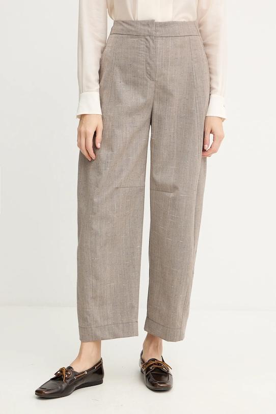 Брюки из коллекции MAX&Co. Изготовленные из узорчатой ткани, натуральные шерстяные волокна легче традиционных и отличаются исключительной мягкостью, нежностью и прочностью. - Свободный крой, обеспечивающий полную свободу движений. - Коническая ножка. - Модель с высокой талией, застежкой на молнию, пуговицы и крючок. - Накладные карманы. - Тонкая, неэластичная ткань. - Ширина талии: 39 см. - Ширина бедер: 61 см. - Высота талии: 34 см. - Ширина штанины внизу: 24 см. - Ширина штанины: 35 см. - Длина по внутреннему шву: 70 см. - Размеры указаны для размера: 36.