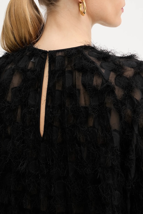Эта блузка BOSS выполнена из тонкой, неэластичной ткани. Полиэстер обеспечивает лучшую устойчивость к сминанию. - Свободный крой, обеспечивающий полную свободу движений. - Классический круглый вырез. - Рукава реглан благодаря своей конструкции обеспечивают большую свободу движений. - Рукава отделаны узкой эластичной манжетой. - Застегивается на крючок сзади. - Модель с декоративной бахромой. - Длина рукава (от горловины): 56 см. - Длина: 49,5 см. - Ширина под мышками: 59 см. - Размеры указаны для размера: 36.