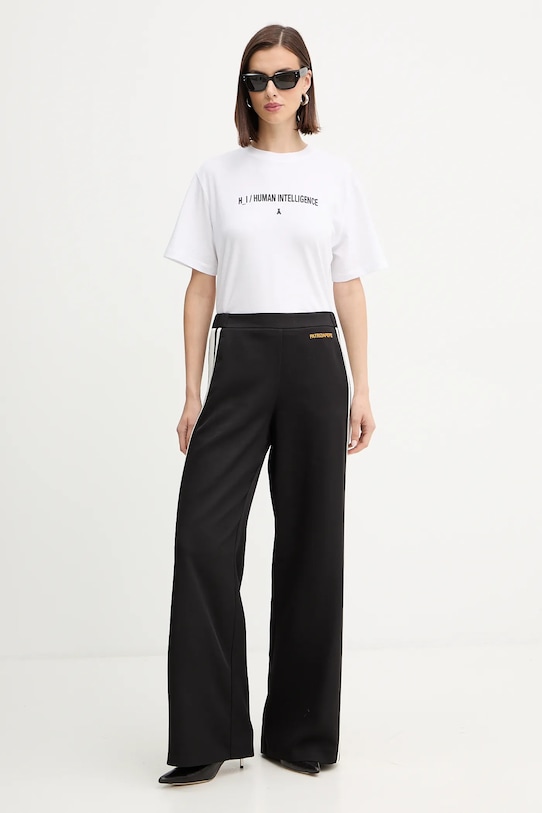 Брюки из коллекции Patrizia Pepe из тканого материала. Полиэстер обеспечивает повышенную устойчивость к сминанию. - Модель из линейки Go Green, изготовленная из волокон, полученных с использованием экологичных производственных процессов, что снижает их воздействие на окружающую среду. - Широкие штанины. - Эластичный пояс. - Два боковых накладных кармана. - Модель с полосками. - Ширина талии: 34 см. - Ширина бедер: 44 см. - Высота талии: 33 см. - Ширина штанины: 32 см. - Ширина штанины внизу: 32 см. - Длина по внутреннему шву: 81 см. - Размеры указаны для размера: 36.
