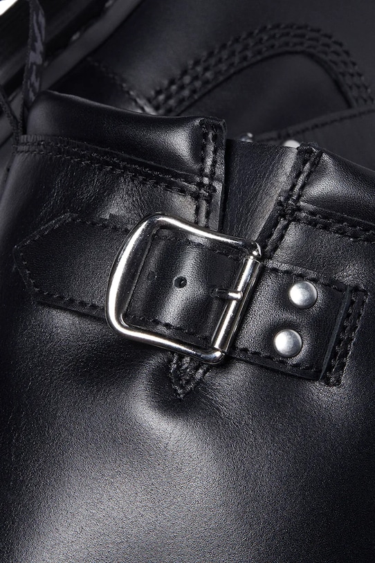 Ботильоны из коллекции Dr. Martens, изготовленные из натуральной кожи. С прочной и износостойкой резиновой подошвой. - AirWair - система амортизации, которая поглощает внешнюю энергию, гасит удары, тем самым значительно повышая комфорт использования. - Круглый, жёсткий носок. - Жесткий задник стабилизирует пятку и удерживает ногу в обуви, не давая ей выскальзывать во время движения. - Текстильная подкладка предотвращает раздражение и обеспечивает высокий комфорт при ношении. - Кожаная стелька комфортна для стопы и предотвращает натирание, потертости и появление неприятного запаха. - Декоративные пряжки.