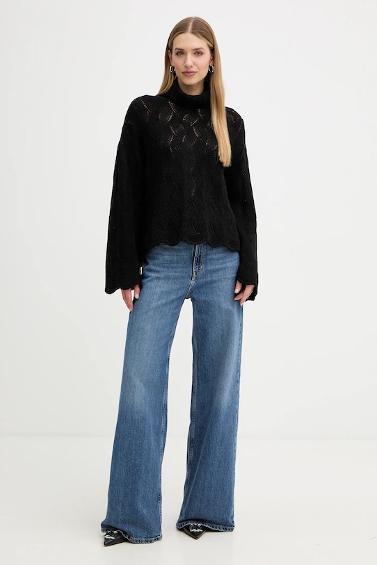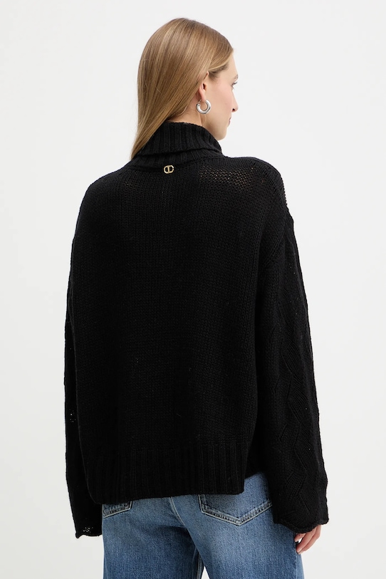 Свитер из коллекции Twinset из плотной трикотажной ткани. Высокие терморегулирующие свойства шерсти помогают согреться в холод и охладиться в жару. - Свободный крой, обеспечивающий полную свободу движений. - Крой рукава со спущенной линией плеча не ограничивает подвижность. - Модель с высоким воротом. - Привлекающее внимание плетение. - Длина рукава (от горловины): 72 см. - Длина: 53 см. - Ширина под мышками: 60 см. - Размеры указаны для размера: S.
