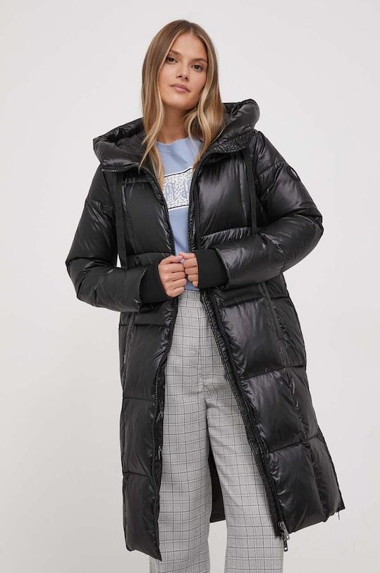 - Поднятый воротник и несъемный капюшон обеспечивают дополнительную защиту от холода.