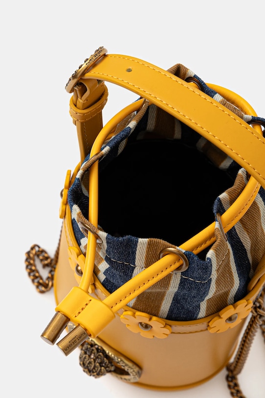 Небольшая сумка-тоут из коллекции Kurt Geiger London. Эта модель на молнии выполнена из комбинации натуральной кожи и текстиля. Материал плотный и хорошо держит форму. - Входящий в комплект тканевый чехол защищает изделие от пыли. - Камера затягивается шнурками. - Модель не имеет внутренних карманов. - Усиленное дно сумки позволяет изделию долго сохранять форму. - Сумка для ношения в руке или на плече. - Удобная регулируемая ручка. - Ремешок длинный, несъемный, нерегулируемый. - Не подходит для формата А4. - Минимальная длина ручки: 30 см. - Максимальная длина ручки: 37 см. - Длина ремешка: 128 см. - Глубина: 11 см. - Высота: 16 см. - Ширина у основания: 14 см.