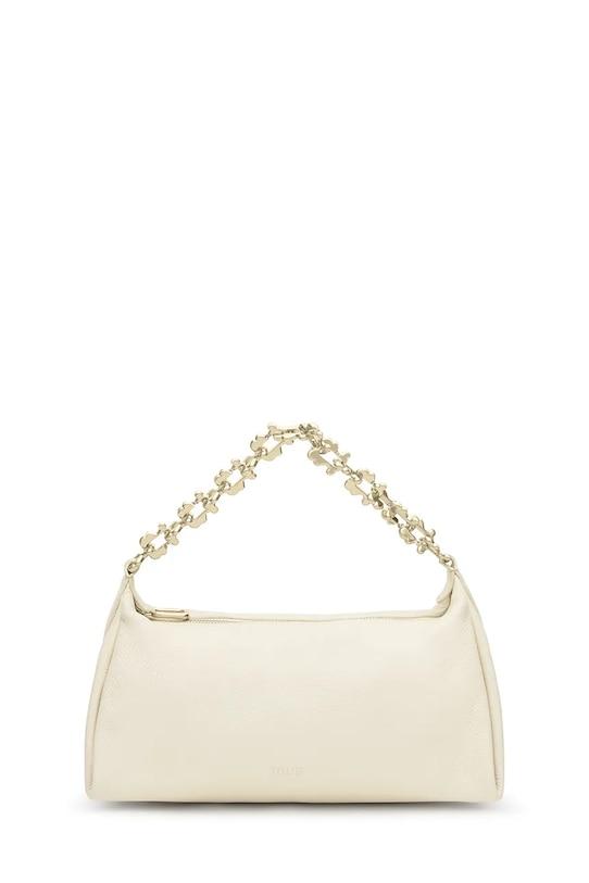 Небольшая сумочка из коллекции Tous. Модель на молнии, выполнена из натуральной кожи. - Эта модель изготовлена в соответствии с рекомендациями Leather Working Group, которая сертифицирует кожевенные заводы посредством строгих аудитов. Эти усилия направлены на снижение потребления энергии и воды при дублении кожи, а также на устранение загрязнения сточных вод. - Не подходит для формата А4. - Отделение на молнии. - Съемная цепь. - Несъемный, регулируемый ремешок. - Внутренний карман на молнии. - Высота: 18 см. - Ширина у основания: 34 см. - Глубина: 15 см.