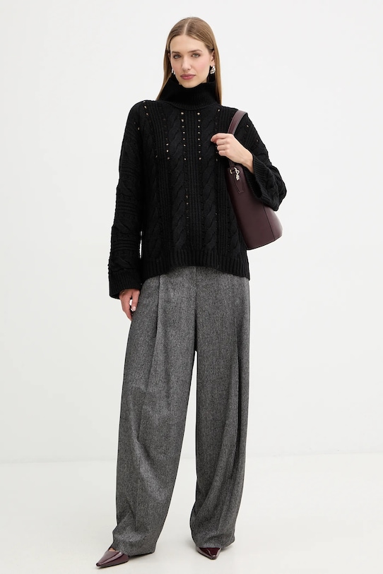 Брюки из коллекции BOSS из меланжевой ткани. Модель выполнена из исключительно комфортного материала с высоким содержанием вискозы. - Простой дизайн. - Модель с высокой талией, застежкой на молнию, пуговицы и крючок. - Два боковых накладных кармана. - Два накладных кармана на ягодицах. - Ширина талии: 42 см. - Ширина бедер: 55 см. - Высота талии: 41 см. - Ширина штанины внизу: 29 см. - Ширина штанины: 42 см. - Длина по внутреннему шву: 77 см. - Размеры указаны для размера: 36.