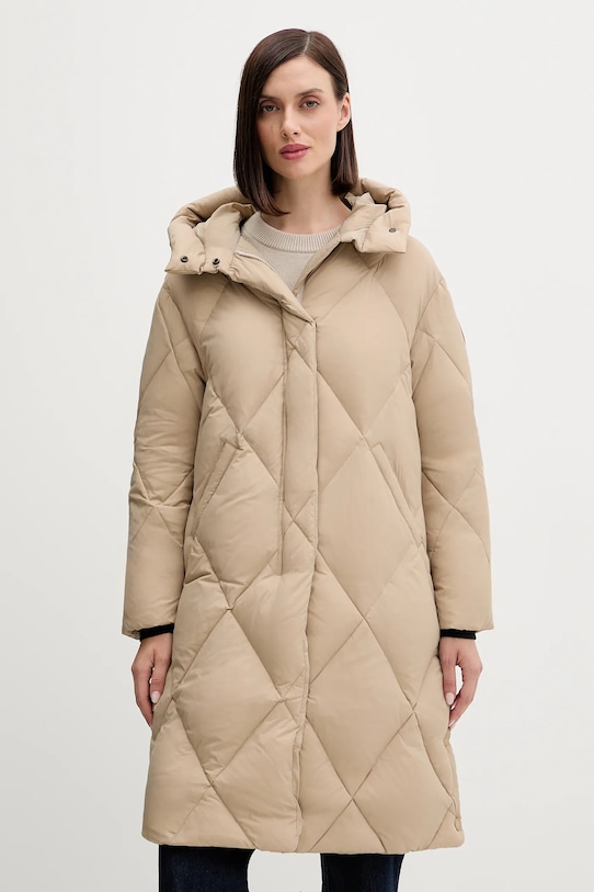 Пуховик из коллекции Bomboogie. Утеплённая модель выполнена из гладкого материала. - Водонепроницаемая и ветрозащитная модель. - Простой дизайн, не стесняющий движений. - Застегивается на двухстороннюю молнию и кнопки. - Модель с капюшоном. - Два боковых накладных кармана. - Утепленная модель с подкладкой. - Наполнитель - натуральный пух и перья. - Внутренние накладные карманы. - Застежка на кнопки сбоку. - Длина рукава: 53 см. - Длина: 99 см. - Ширина под мышками: 52 см. - Ширина плеч: 46 см. - Размеры указаны для размера: S.