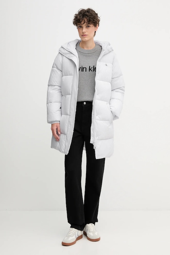 Эта куртка из коллекции Calvin Klein Jeans утеплена и изготовлена из гладкой ткани. Стёганая конструкция дополнена синтетическим утеплителем для дополнительного комфорта в прохладную погоду. - Утеплитель Sorona Aura обеспечивает тепло в любом климате, а также является экологически чистым. - Водонепроницаемая и ветрозащитная модель. Водостойкость означает повышенную устойчивость к воздействию воды. Изделие сохраняет свои свойства при контакте с водой, что обеспечивает больший комфорт благодаря более низкому порогу водопроницаемости, но не гарантирует полной водонепроницаемости. - Застежка-молния и кнопки. - Поднятый воротник и несъемный капюшон обеспечивают дополнительную защиту от холода. - Текстильный ремешок в комплекте. - Внешние карманы на молнии. - Длина рукава: 58 см. - Длина: 90 см. - Ширина под мышками: 53 см. - Ширина плеч: 42 см. - Размеры указаны для размера: S.