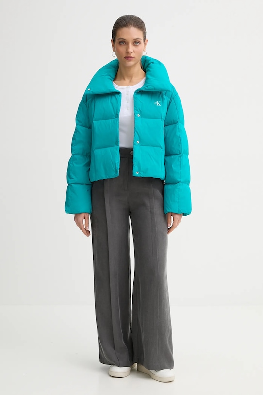 Эта утеплённая куртка из коллекции Calvin Klein Jeans выполнена из гладкого материала. Наполнитель из натурального пуха и пера обеспечивает высокий уровень защиты от холода. - Модель утеплена натуральным пухом и пером из ответственных источников. - Ветрозащитная модель. - Простой дизайн, не стесняющий движений. - Модель с повышенной водонепроницаемостью. - Однобортный, застегивается на кнопки. - Поднятый воротник. - Внешние карманы на молнии. - Завязки внизу. - Длина рукава: 56 см. - Длина: 50 см. - Ширина под мышками: 52 см. - Размеры указаны для размера: S.