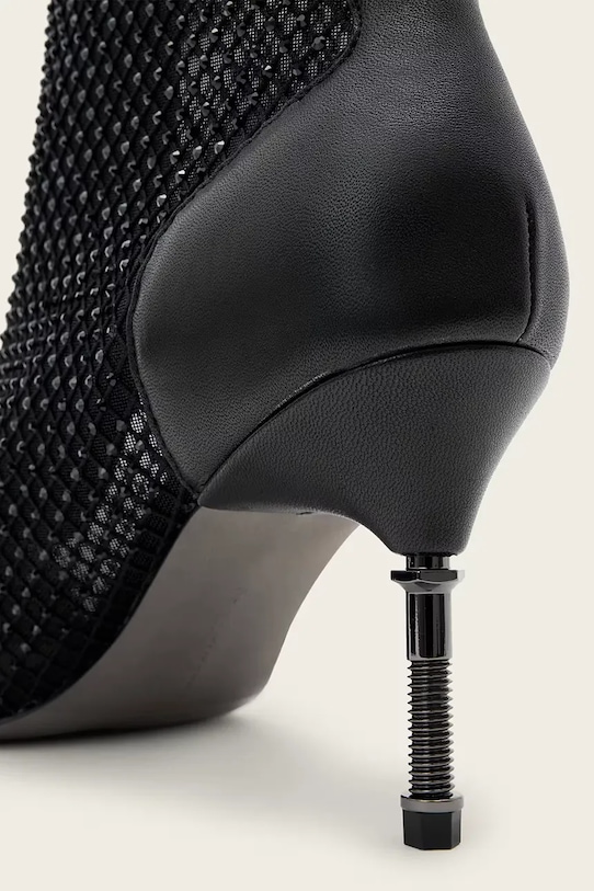 Ботильоны из коллекции AllSaints, выполненные из комбинации текстиля и натуральной кожи. Эффектная модель для особых случаев. - Модель на шпильке. - Острый нос. - Модель со стразами. - Удобная застежка-молния позволяет легко надевать и снимать. - Кожаная стелька комфортна для стопы и предотвращает натирание, потертости и появление неприятного запаха. - Высота каблука: 9 см.