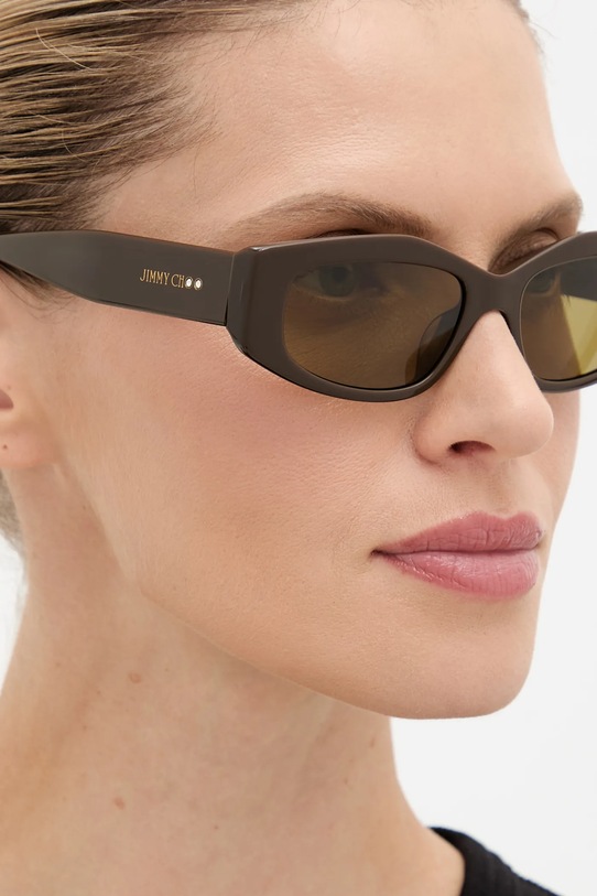 Солнцезащитные очки из коллекции Jimmy Choo. Эта модель с прозрачными линзами и пластиковой оправой. Защита от ультрафиолета UV 400. - Форма оправы: прямоугольная. - Фильтр UV 400 обеспечивает максимальную защиту от солнечного излучения. - Cat.2 (пропускает 18–43% света) - линзы со средней степенью затемнения. Очки с фильтром Cat.2 подходят для дней с низкой интенсивностью солнечного света. - Модель поставляется с чехлом и текстильным чехлом. - Ширина рамы: 144 мм. - Ширина линзы: 51 мм.