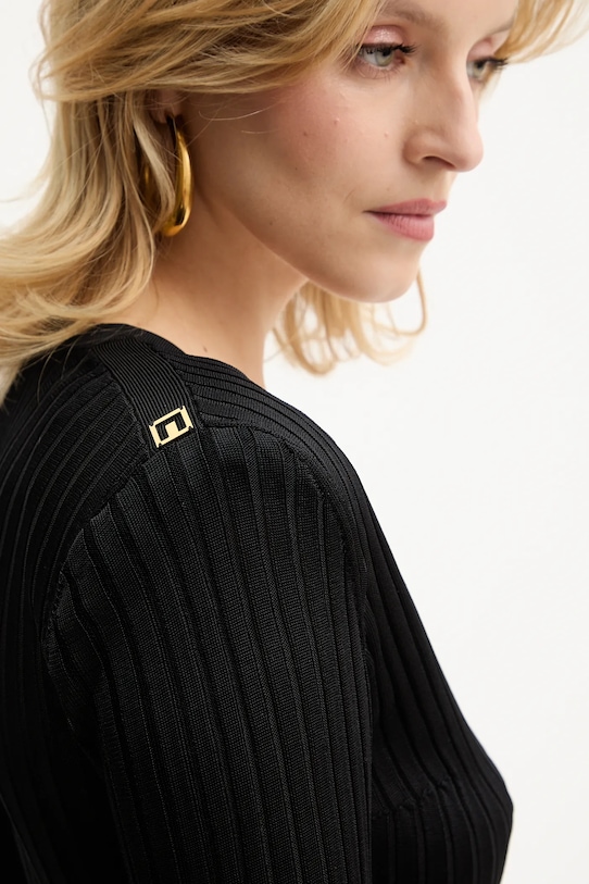 Этот свитер из коллекции Elisabetta Franchi выполнен из тонкого трикотажа. Он изготовлен из исключительно комфортного и дышащего материала. - Приталенный крой, подчеркивающий силуэт. - Трикотажное полотно в рубчик. - В плечах вшиты подкладки. - Острый вырез. - Длина рукава: 64 см. - Длина: 61 см. - Ширина под мышками: 40 см. - Размеры указаны для размера: 36.