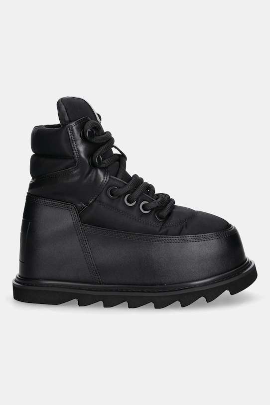 Эти зимние ботинки из коллекции United Nude изготовлены из комбинации текстиля и натуральной кожи. Они оснащены текстильной стелькой, которая удобна и легко чистится. - Платформенная модель. - Резиновая подошва прочная и устойчивая к повреждениям. - Приподнятый верх помогает укрепить ногу в области лодыжки, что защищает от неконтролируемых движений при движении по неровной поверхности. - Круглый, слегка утолщенный носок. - Усиленный задник с мягким наполнителем защищает пятку от истирания. - Классическая шнуровка позволяет индивидуально подогнать обувь по ноге. - Высота платформы: 10 см. - Длина вставки: 24,5 см. - Размеры указаны для размера: 38.
