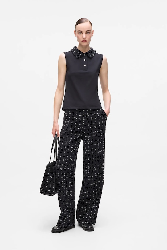 Брюки из коллекции Karl Lagerfeld. Изготовлены из смесовой шерсти. - Брюки облегают бедра и ягодицы. - Модель с высокой талией и застежкой-молнией. - Прямая нога полной длины.