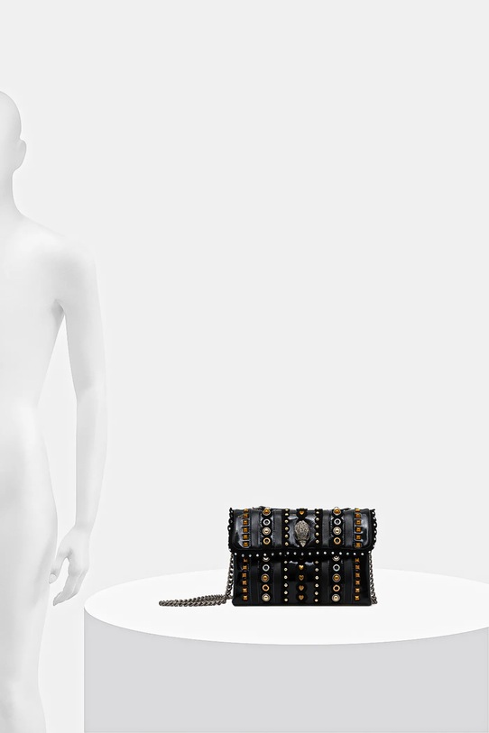 Небольшая сумочка из коллекции Kurt Geiger London. Застёжка-застёжка выполнена из жёсткого материала, сохраняющего форму. - Клапан застегивается на магнит. - Жесткая структура позволяет изделию сохранять форму в течение длительного времени. - Внутреннее отделение для карт. - Сумка для ношения в руке или на плече. - Несъемный регулируемый ремешок позволяет индивидуально подогнать посадку. - Не подходит для формата А4. - Модель на подкладке. - Входящий в комплект тканевый чехол защищает изделие от пыли. - Количество слотов для карт: 1. - Минимальная длина ремешка: 68 см. - Максимальная длина ремня: 108 см. - Глубина: 7 см. - Высота: 15 см. - Ширина у основания: 22,5 см.