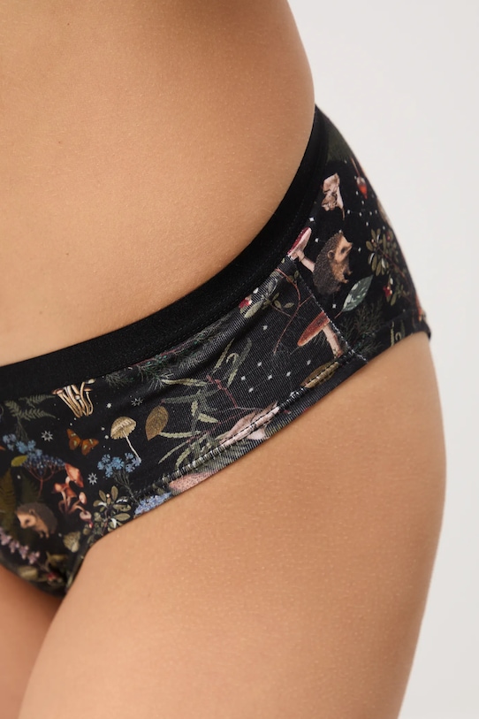 Трусики из коллекции «Medicine». Изготовлены из трикотажного полотна с рисунком. Комплект из трёх штук. - Количество предметов в наборе: 3. - Модель со стандартной талией. - Эластичная резинка на талии. - Нижние края отделаны резинкой. - Хлопковая вставка в области паха для большего комфорта. - Узорчатое трикотажное полотно. - Узор с растительными и животными мотивами.