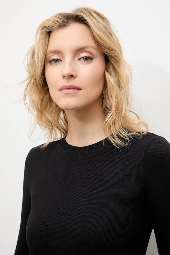 Лонгслив из коллекции Answear.LAB, выполненный из трикотажного полотна в рубчик. Изготовлен из исключительно комфортного материала с высоким содержанием хлопка. - Приталенный фасон. - Круглый вырез. - Ребристая структура материала делает его чрезвычайно гибким и идеально прилегает к телу. - Длина рукава: 58 см. - Длина: 54 см. - Ширина под мышками: 38 см. - Размеры указаны для размера: S.