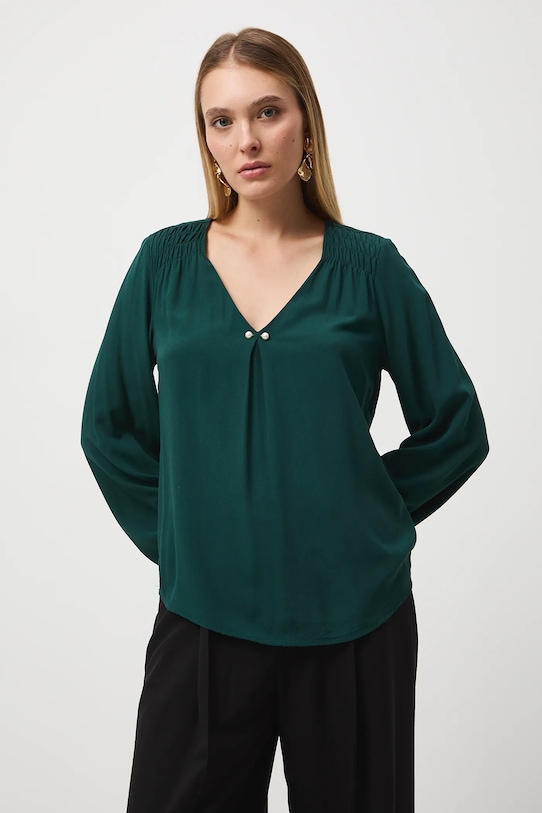 Эта блузка из коллекции Medicine выполнена из гладкой ткани и имеет заостренный вырез.