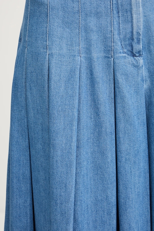 Эта юбка из коллекции Weekend от Max Mara выполнена из денима. Она изготовлена из исключительно комфортной хлопковой ткани. - Застежка на пуговицы и молнию. - Застежка на пуговицы. - Расклешенный крой. - Плиссированная модель. - Ширина талии: 34 см. - Длина: 95 см. - Размеры указаны для размера: 36.