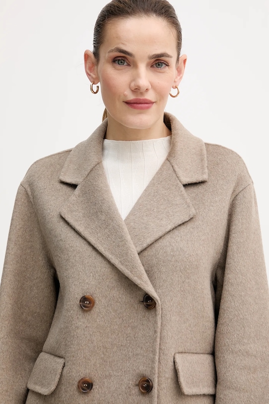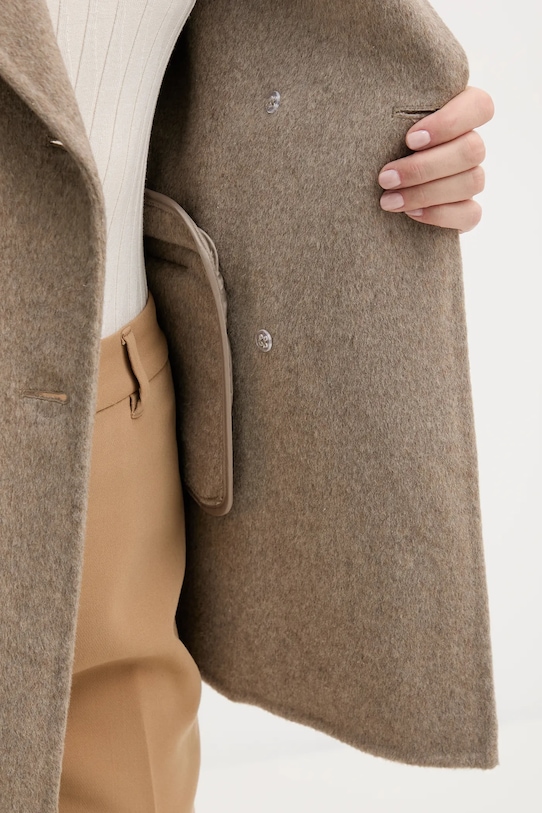 Это пальто из коллекции Gaudi без подкладки сшито из гладкой ткани. Высокое содержание шерсти обеспечивает защиту от холода, а добавление полиэстера повышает устойчивость к сминанию. - Простой дизайн, не стесняющий движений. - Удобная застежка на кнопки позволяет легко надевать и снимать. - Классические лацканы. - Крой рукава со спущенной линией плеча не ограничивает подвижность. - Модель с карманами, декорированными клапанами. - Неутепленная модель с подкладкой. - Длина рукава (от воротника): 70,5 см. - Длина: 71 см. - Ширина под мышками: 56,5 см. - Размеры указаны для размера: S.
