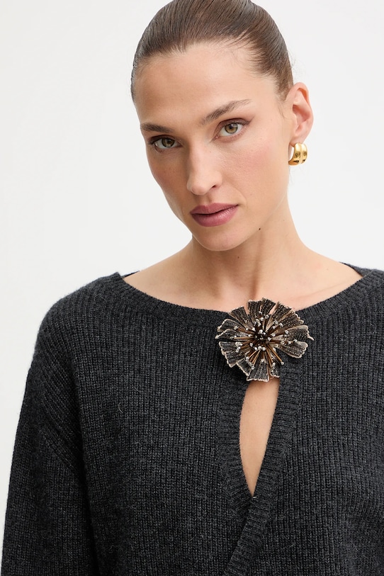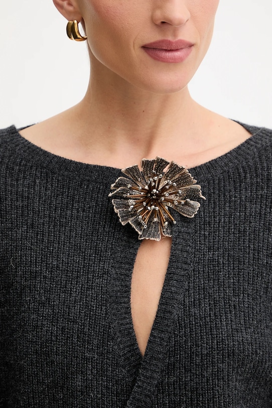 Этот свитер из коллекции Simona Corsellini выполнен из тонкого эластичного трикотажа. Он дополнен эффектной брошью. - Свободный крой, обеспечивающий полную свободу движений. - Длинный рукав. - Крой рукава со спущенной линией плеча не ограничивает подвижность. - Классический круглый вырез. - Декоративный вырез на горловине. - Рукава и нижний край отделаны удобными эластичными манжетами. - Длина рукава (от горловины): 66 см. - Длина: 58 см. - Ширина под мышками: 53 см. - Размеры указаны для размера: S.