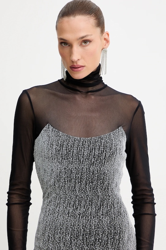 Платье из коллекции Simona Corsellini, выполненное из тонкого эластичного трикотажа. Эффектный дизайн для особых случаев. - Приталенный крой, подчеркивающий силуэт. - Модель с высоким воротом. - Модель на подкладке. - Материал с металлической нитью. - Модель со стразами. - Длина рукава: 69 см. - Длина: 83 см. - Ширина под мышками: 37 см. - Ширина талии: 31 см. - Ширина бедер: 39 см. - Размеры указаны для размера: 36.