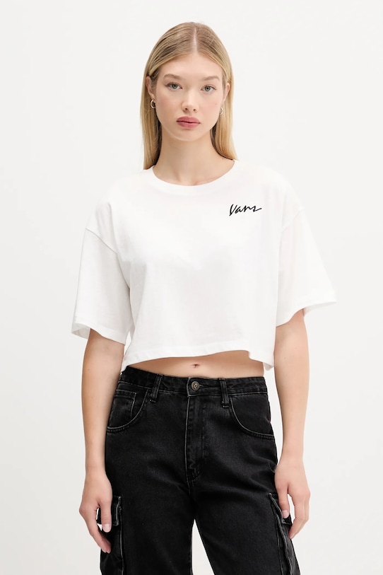Эта футболка из коллекции Vans выполнена из тонкой, эластичной ткани на основе исключительно комфортного хлопка. - Свободный крой, обеспечивающий полную свободу движений. - Крой рукава со спущенной линией плеча не ограничивает подвижность. - Классический круглый вырез. - Вышитый логотип. - Длина: 45 см. - Ширина под мышками: 58 см. - Размеры указаны для размера: S.