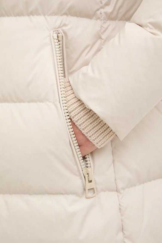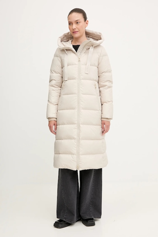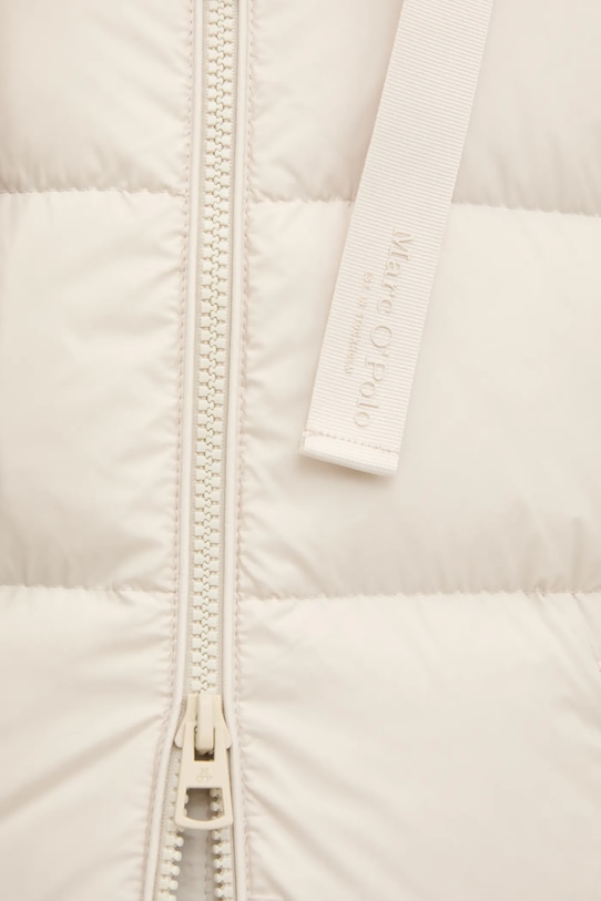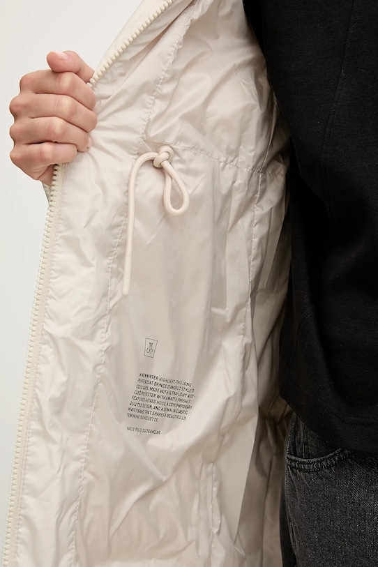 Эта утеплённая куртка из коллекции Marc O'Polo выполнена из гладкой ткани. Стёганая конструкция с наполнителем из натурального пуха гарантирует высокий уровень защиты от холода. - Наполнитель из натурального переработанного пуха, произведен в соответствии с сертификацией RDS (Responsible Down Standard). - Простой дизайн, не стесняющий движений. - Поднятый воротник и несъемный капюшон обеспечивают дополнительную защиту от холода. - Внешние карманы на молнии. - Рукава отделаны удобными эластичными манжетами. - Длина рукава: 63 см. - Длина: 108 см. - Ширина под мышками: 50 см. - Ширина плеч: 40 см. - Размеры указаны для размера: 36.