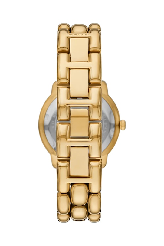 Часы из коллекции Michael Kors. Модель с круглым циферблатом и сегментированным браслетом. Упакованы в фирменную коробку Michael Kors. - Форма корпуса: круглая. - Сегментированный браслет. - Материал корпуса и браслета: сталь. - Корпус покрыт технологией PVD, что делает его более устойчивым к царапинам. - Механизм: кварцевый, питание от батареек. - Стекло: минеральное (закаленное, очень устойчивое к ударам, трудно царапается). - Водонепроницаемость: WR. 50M (5ATM) - устойчив к брызгам, плаванию на поверхности. - Диаметр корпуса: 36 мм. - Толщина корпуса: 10 мм.