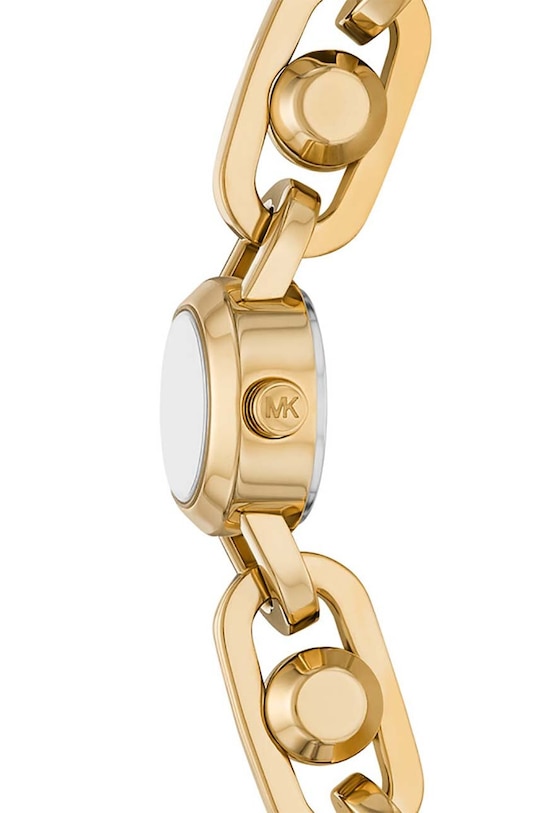 Часы из коллекции Michael Kors. Модель с круглым циферблатом и браслетом, имитирующим драгоценный камень. Упакованы в фирменную коробку. - Материал корпуса и браслета: нержавеющая сталь. - Форма корпуса: круглая. - Ювелирный браслет. - Водонепроницаемость: WR. 50M (5ATM) - устойчив к брызгам, плаванию на поверхности. - Стекло: минеральное (закаленное, очень устойчивое к ударам, трудно царапается). - Механизм: кварцевый, питание от батареек. - Ширина корпуса: 14 мм. - Толщина корпуса: 6 мм. - Высота корпуса: 24 мм.