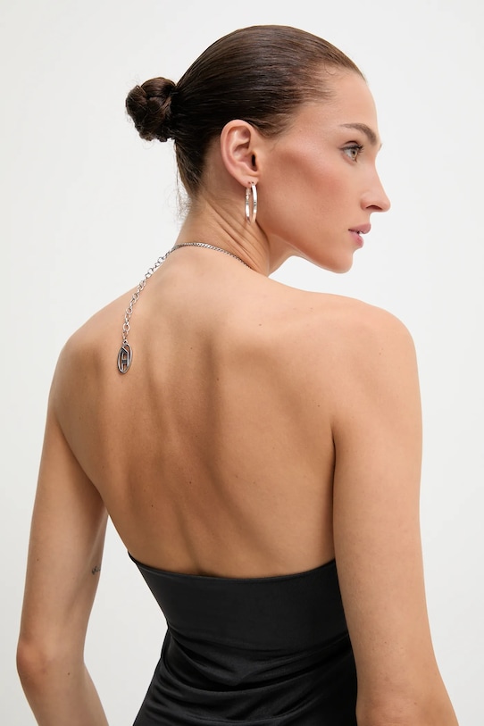 Платье из коллекции Diesel из тонкой, высокоэластичной ткани. Эффектный дизайн для особых случаев. - Модель со съемной декоративной цепочкой. - Вырез халтер. - Декоративная сборка с переплетом. - Приталенный крой, подчеркивающий силуэт. - Длина: 86 см. - Открытая спина. - Ширина под мышками: 35 см. - Ширина талии: 35 см. - Ширина бедер: 40 см. - Размеры указаны для размера: S.