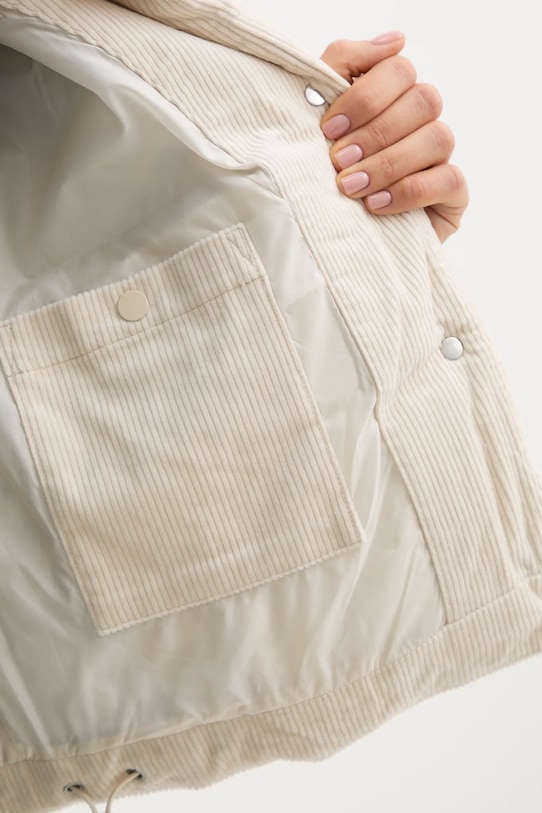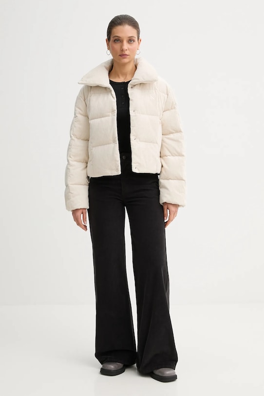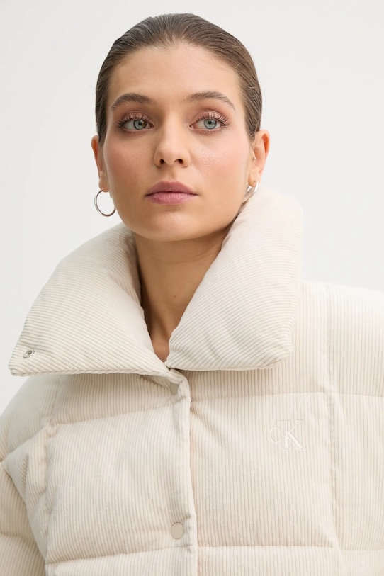 Эта утеплённая куртка из коллекции Calvin Klein Jeans выполнена из вельвета. Она мягкая и приятная на ощупь. - Модель наполнена натуральным пухом, который поступает из ответственных источников, заботящихся об этичном разведении птиц. - Простой дизайн, не стесняющий движений. - Длинный рукав. - Удобная застежка-кнопка позволяет легко надевать и снимать. - Нижний край отделан завязками, позволяющими индивидуально регулировать размер. - Два боковых кармана с застежкой на кнопку. - Длина рукава: 58 см. - Длина: 52 см. - Ширина под мышками: 52 см. - Ширина плеч: 44 см. - Размеры указаны для размера: S.