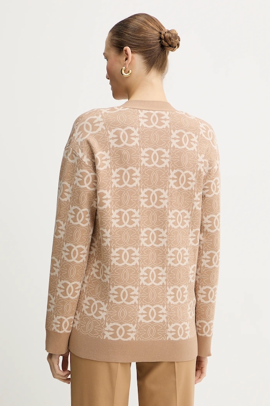 Этот кардиган из коллекции Pinko выполнен из трикотажа средней плотности. Оптимальная эластичность обеспечивает полную свободу движений. - Удобная застежка на кнопки позволяет легко надевать и снимать. - Рукава и нижний край отделаны удобными эластичными манжетами. - Узорчатое трикотажное полотно. - Заниженная линия плеча. - Длина рукава (от горловины): 77 см. - Длина: 69 см. - Ширина под мышками: 55 см. - Размеры указаны для размера: S.
